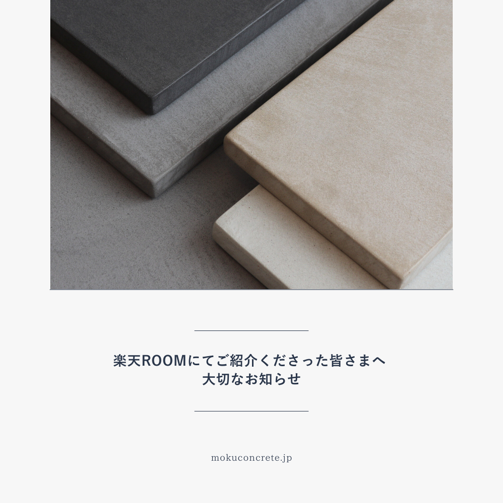 楽天ショップ運営終了と今後のご案内お知らせ このたび、MOKUCONCRETEは、よりお客様に集中し質の高いサービスと体験を ご提供するため楽天ショップの運営を終了し、公式オンラインショップに 一本化することといたしました。 長きにわたりご愛顧いただきましたこと、 […] 続きを読む