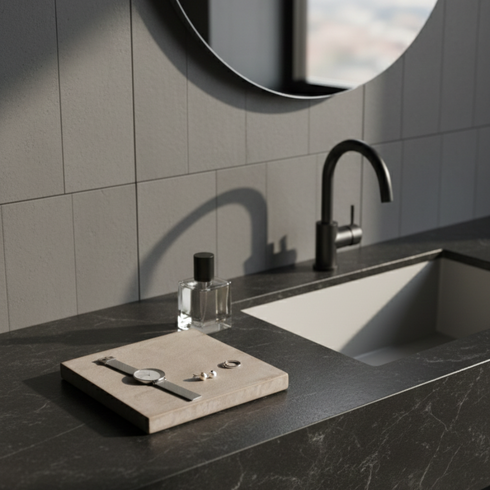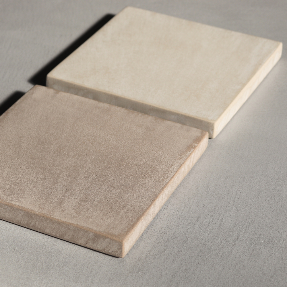 MOKUCONCRETEのカラーや質感を、 実物でご確認いただくためのサンプルプレートです。 鉱物性左官塗料「モールテックス」を使用し、 実際のプロダクトと同じ工程で表面・側面・底面まで全面を仕上げています。 色味だけでなく、表情や手ざわり、エッジの精度まで あわせてご確認いただけます。 サイズは200×200mm、厚み22mm。 フェルトと壁掛け用の留め具を同梱しており、 小物プレートや壁掛けとしてもご使用いただけます。 用途を限定せず、空間や好みに合わせて 自由にお使いいただける一枚です。 2枚を重ねてレイアウトするなど、 簡単なアレンジもお楽しみいただけます。