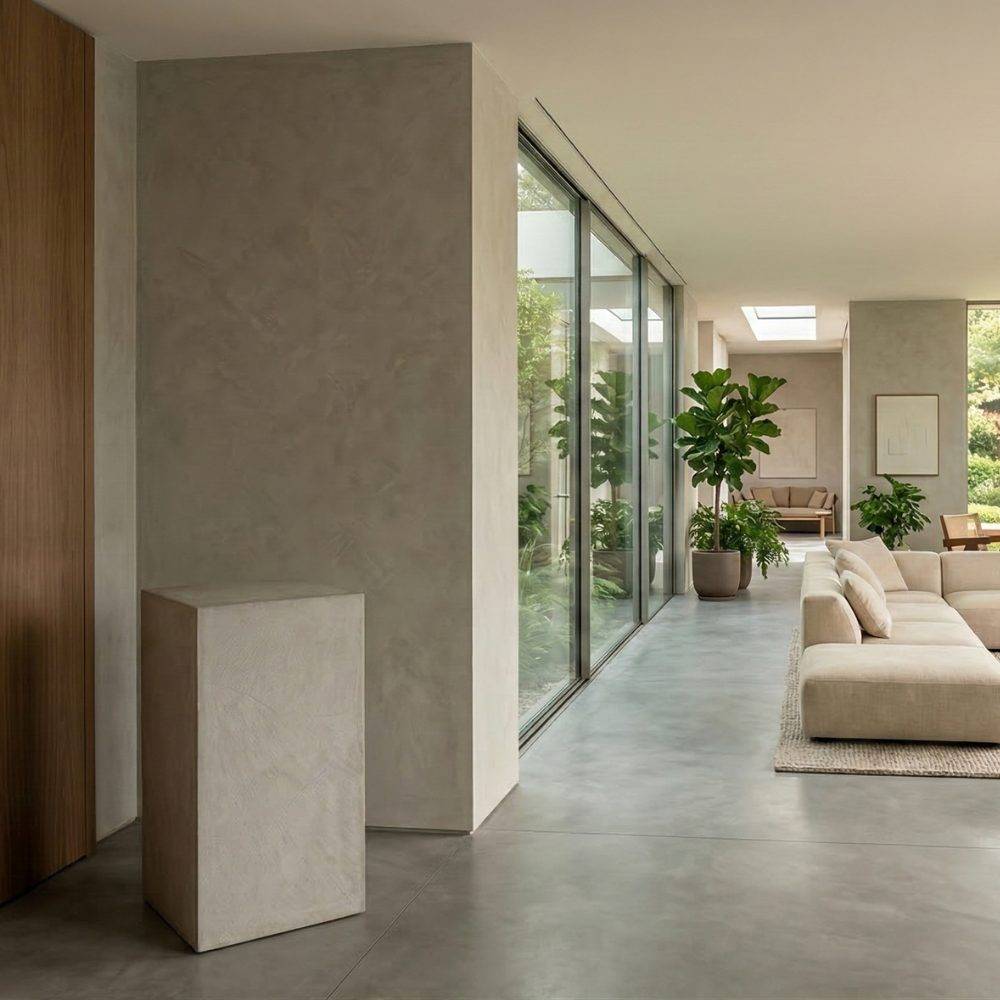 モールテックスは、ベルギーのBEAL International社が開発した鉱物性の左官材です。成分の約95%がヨーロッパ近郊の天然素材で構成されており、環境にも配慮されています。デザイン性・耐久性・防水性・不燃性に優れ、モールテックス特有の無機質な質感が特徴です。この質感と性能の高さから、カフェやアパレルショップでは、壁・床・カウンター・什器などに用いられ、空間演出に最適な素材として選ばれています。ご自宅でも、キッチンカウンターやダイニングテーブル、バスルームの壁や床に使用され、スタイリッシュで機能的な空間づくりに採用されています。