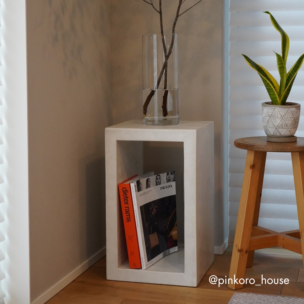 耐久性や防水性がしっかりしてて、重すぎず、このモルタルっぽい塗りの感じが絶妙でとっても気に入っています🥺🫶🏻🫶🏻今はリビングに飾ってるけど、今後は玄関や寝室にも置いてみようかなー♪何のベースやオブジェ飾ろうかなー♪って、ワクワクしながら置いてます🥰💗