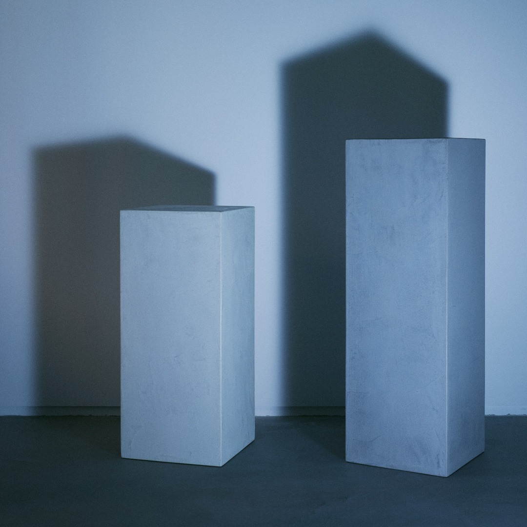@mokuconcrete さんはモールテックス素材の家具、什器を扱われていて、その展示台に一目惚れ。気になる色のサンプルを取り寄せて、色々相談に乗っていただき、規格サイズの2種類をそれぞれ違う色でお願いしました。色味が絶妙で、モールテックス独特のムラがたまらなく良いです。